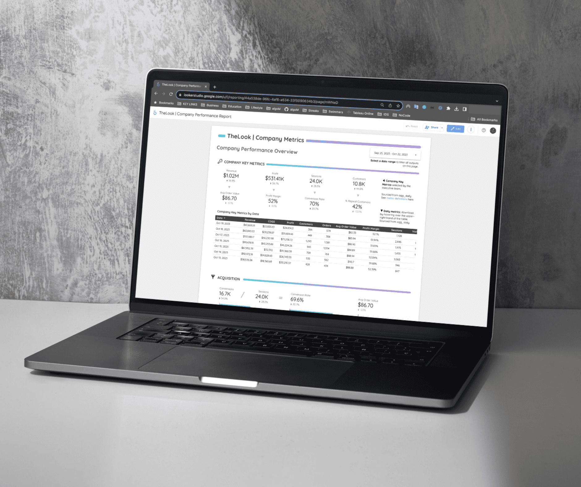 We use dashboard templates to quickly build a dashboard in Looker. We quickly iterate and tailor the dashboard to your goals from there.