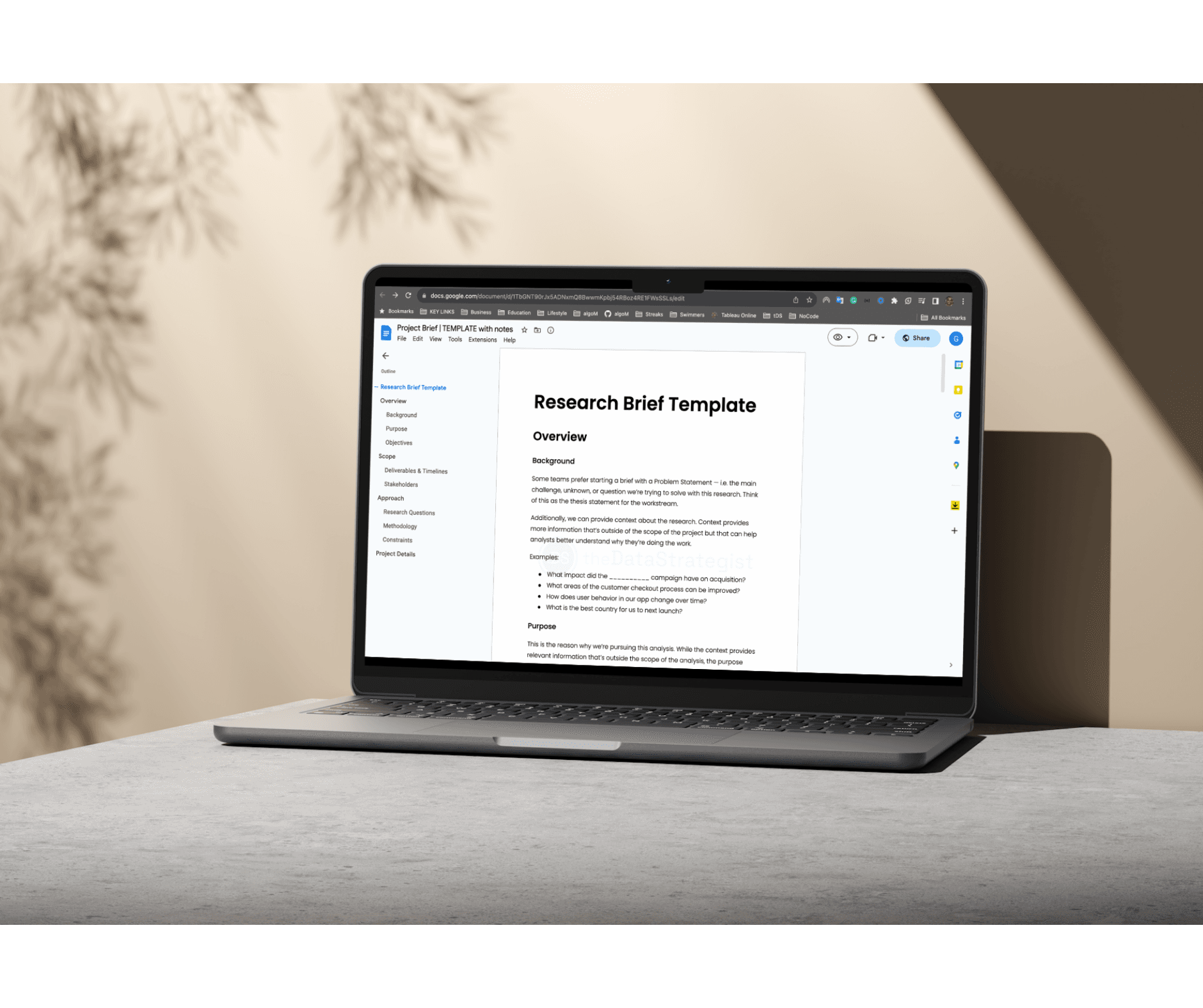 For each potential project, we create a Research Brief that outlines the goals, context, and requirements to successfully complete the project. This is the first step to ensure each project is completed effectively and on time.